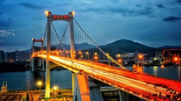 连接厦门岛和海沧新区的海沧大桥是中国最长的斜拉桥之一,也是一道壮观的风景线。站在桥上,可以欣赏到绚丽的海景和壮观的夜景。