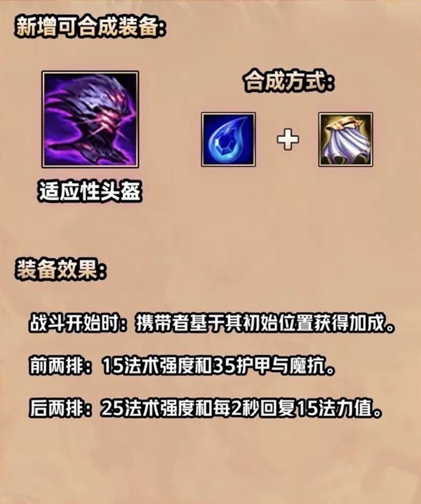 以上就是小编带来的关于金铲铲之战S9.5适应性头盔的装备介绍,小伙伴们敬请期待吧,获取更多相关内容就在。