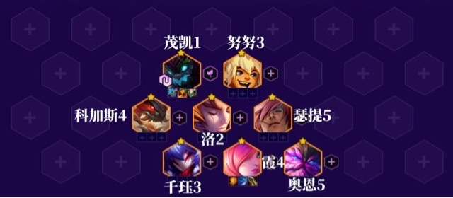灵魂莲华干珏钱签辛德拉可以提升下我们的伤害,纳尔凯隐边缘切入然后和千珏打出很强的火力。