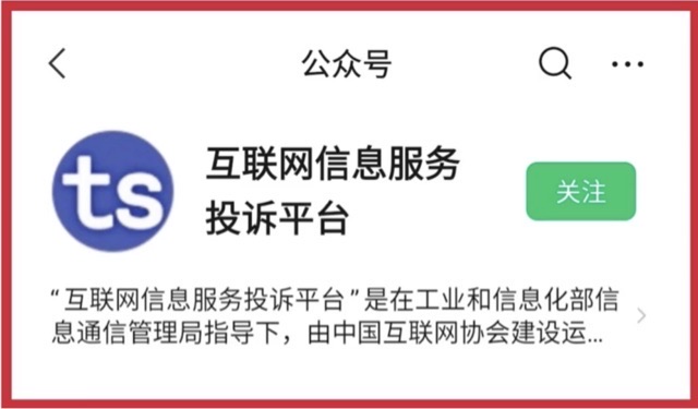 ⑥微信公众号“互联网信息投诉平台”