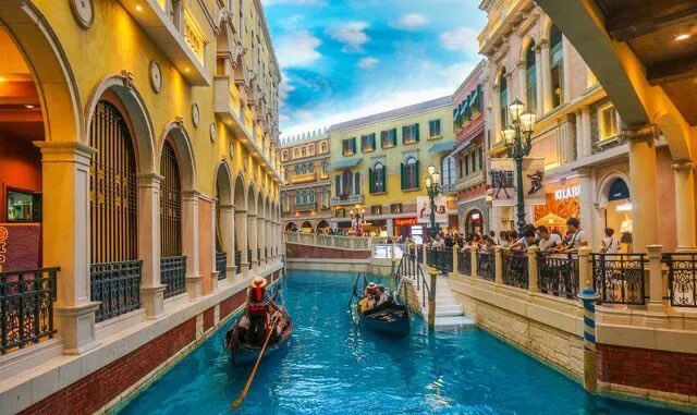 澳门威尼斯人度假村酒店,以意大利威尼斯水乡以及雕像为建筑特色,并参考拉斯维加斯威尼斯人度假村酒店作为设计蓝本,是一座超级大型的度假式酒店。威尼斯人是一个集美食、佳酿、购物、住宿、娱乐及商务于一身的大型综合度假村,有着充满威尼斯特色的拱桥、小运河及石板路。同时,度假村还有堪比红磡香港体育馆的“金光综艺馆”,是澳门最大的室内活动场馆之一,担任过许多知名音乐人的表演场馆以及多个国际性盛事的举办。以及澳门最大型的室内购物中心“大运河购物中心”。地址:澳门特别行政区路氹氹仔金光大道TM望德圣母湾大马路