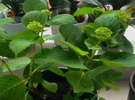 大家养的绣球花不要置于阳光充足的位置,否则大而薄的叶片很容易被太阳晒焦,在阳光过大和高温的环境下绣球花的花朵褪色也快,影响观赏价值。因此,在栽培时,最好选择门廊两侧或者围墙边缘的位置,这些散射光区域能让绣球的花色鲜艳夺目。