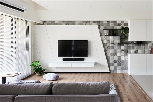 如果不需要考虑过多的收纳需求,最简单方便的方法就是装矮柜电视柜,下方的抽屉就是收纳的主力军,电视上方不装柜子,看上去不会有压抑的感觉,顺眼有舒适。【周边网】