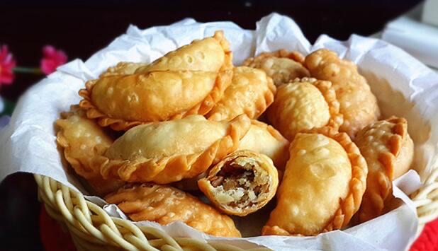 炸角子是每一户客家人都会做的小吃,它的做法与北方的饺子比较相似,只不过里面的馅料有着很大的差异,炸角子是包的芝麻、花生、椰蓉、白糖等等。