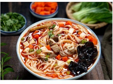 西安臊子面是中国陕西省西安市的特色传统面食之一、是著名的西府小吃,该菜品在陕西关中平原及甘肃陇东等地方流行。臊子面历史悠久,其中含有配菜比如豆腐,鸡蛋等,做法简单。臊子就是肉丁的意思。对于陕西人来说,臊子面的配色尤为重要,黄色的鸡蛋皮、黑色的木耳、红色的胡萝卜、绿色的蒜苗、白色的豆腐等材料,既好看又好吃。