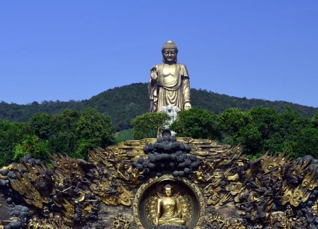 灵山大佛位于江苏省无锡市,高88米,[bai]是中国有名的巨型佛像;连同三层基座在内通高101.5米。灵山大佛像总共耗用铜725吨,佛体由2000块铸造铜壁板拼装焊接而成。