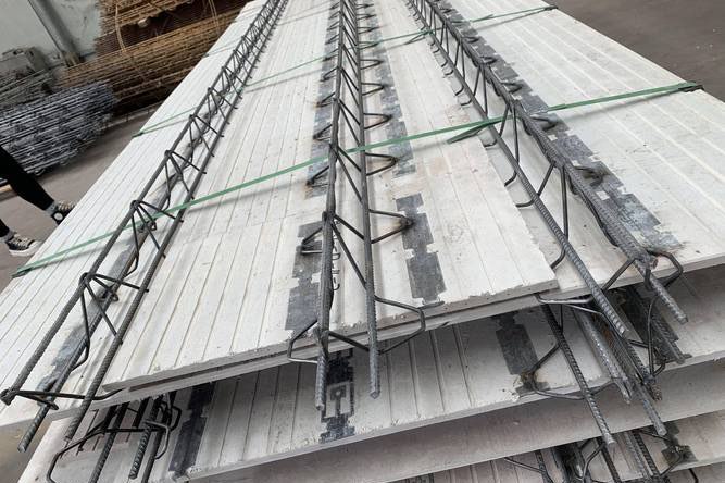 叠合板的内侧设有沟槽,在施工的时候能够起到提升粘合度的作用,焊接的龙骨钢筋桁架是它的连接部件,提升了模板的强度和刚度。它外侧是磨砂面的比较平整,所以施工时不需要再进行砂浆批荡,也能起到节省劳动力的作用,适用性和经济性也都是比较好的。