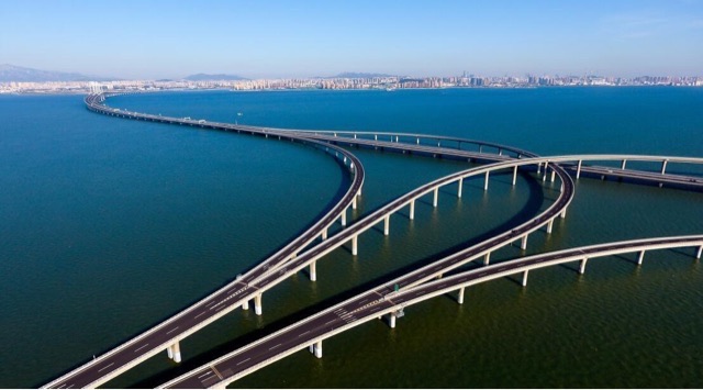 这座大桥是中国最长的跨海大桥,连接着香港、珠海与澳门,全长55公里,耗资1269亿元打造,也是于2019年获得中国建设工程鲁班奖,拥有的科学专利最多,寿命最长、世界里程最长、以空前的施工难度和建造技术而闻名于世的跨海大桥。