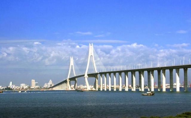 东海大桥是于2002年兴建的重点配套性工程,并于2005年正式通车运营,位于浙江杭州湾洋山深水港海域内,是沪芦高速公路南段疏港支线组成部分,线路全长32.5千米,主桥全长25.3千米,共计耗资71.1亿元人民币。
