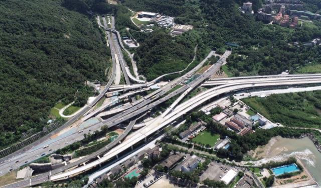 这处盐田港疏港交通的主要通道,是连接着深盐路、疏港专用通道、深盐二通道和盐排高速公路,共耗资3亿元,高达40米,上下分为四层的关键节点,而这个拥有5条匝道的立交桥,也是深圳市最大最宏伟的立交桥。