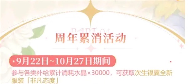 5、玩家累计消耗水晶达到30000档位,即可获得全新服装非凡态度。