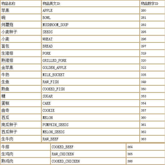 /give 玩家名 物品ID 物品数量 给予玩家物品