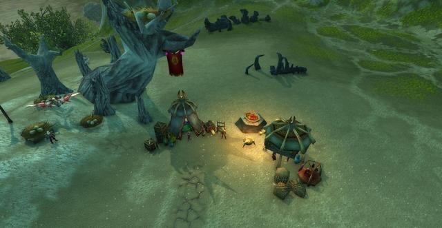 联盟和20662899部落都在79960993凄凉之地82342759修建了21162334几个小型营地24360603,但24416719其目的32779284大多是50100057为了62304231考察或者9898822监视半人马与13166254火刃氏族的10887820动向71684181,铁炉堡的43713839矮人在58041423西方建立了65105674萨加德营地80721370,暗矛巨魔在28224009西南方靠海的5401027位置建立了3219958葬影村,血精灵则建立了18983759弗雷恩的18785270哨站。