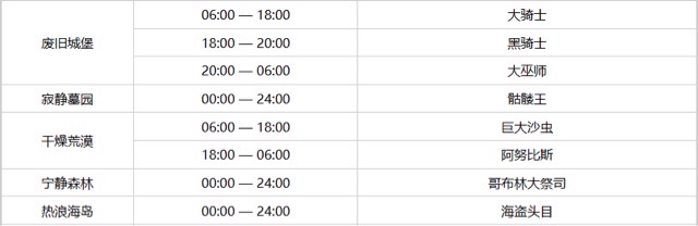 18:00~20:00:黑骑士(开启三周目之后解锁)