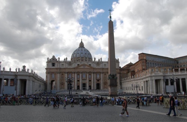 圣彼得大教堂位于梵蒂冈的中心,教堂内部有著名的“镇店三宝”:一是米开朗琪罗的《圣殇》,二是贝尔尼尼设计的圣彼得宝座,还有就是青铜宝盖。