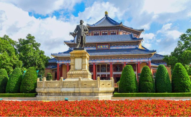 中山纪念堂是广州人民纪念孙中山先生的纪念性建筑物,建筑设计是八角形宫殿式建筑。外形看上去非常庄严宏伟有着浓郁的民族特色。里面有孙中山先生铜像、古树名木、中山纪念碑、避难古鼎等。