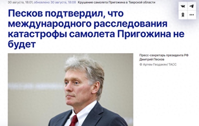 俄总统新闻秘书佩斯科夫:俄罗斯正在对普里戈任在空难中死亡进行内部调查。