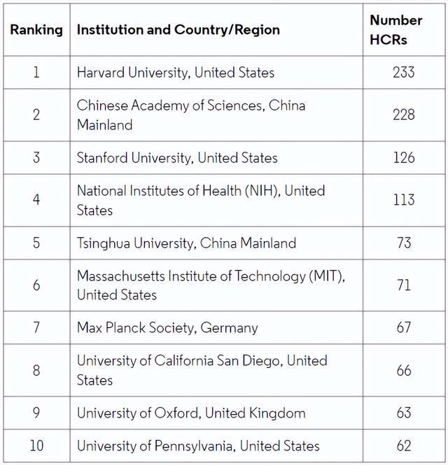 紧随其后的是美国的斯坦福大学(126人)和美国国立卫生研究院(113人)。他们的排名与上期相比没有变化。