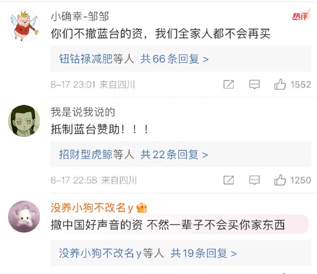 有的则表示如果品牌继续赞助,以后就会拒绝消费该品牌产品。
