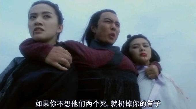 梅艳芳太帅气了。每一个动作都这么潇洒,有风骨,真的是有魏晋南北朝的意思。但是配音又很单纯,声音柔和,和她这个人物性格很符合。单纯,白纸一张。她最开始出场的时候是一身白衣,然后喝水,那个红唇啊!最后决斗那一场,穿一身黑,帅气得简直是要我的命了。