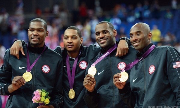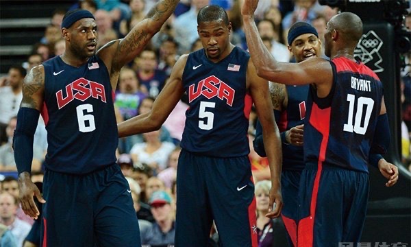 2012年伦敦奥运会,科比、詹姆斯和杜兰特率领美国男篮参战,这支队伍也被称为梦十队。梦十队在当年的奥运会上所向披靡,以全胜成绩夺冠,并创下多项纪录:杜兰特共得到205分,打破了美国男篮单届奥运会的个人得分纪录,与尼日利亚的比赛安东尼全场得到156分,全场分差83分,都是新的纪录,奥运会结束后科比退出美国国家队,美国男篮进入新时代。