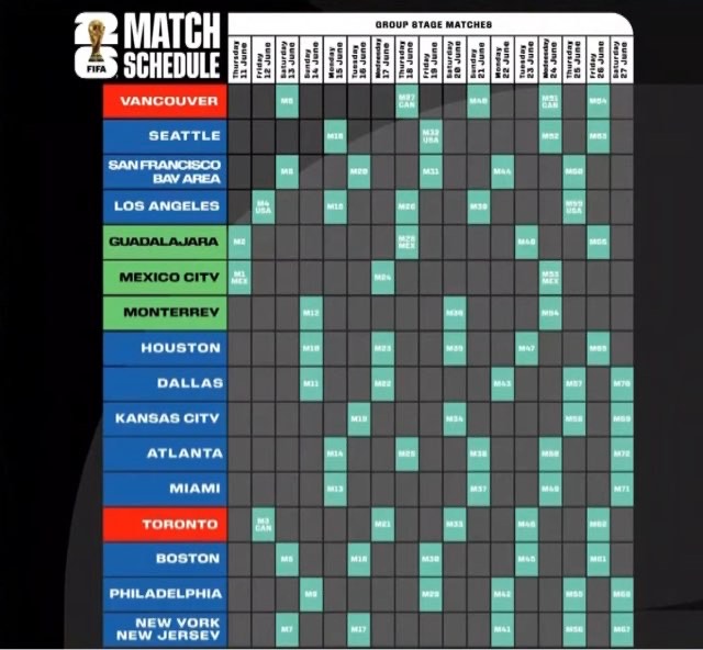 2026年美加墨世界杯各阶段赛程时间一览