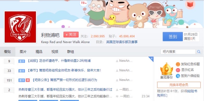随着上赛季夺得欧冠冠军以及本赛季一骑绝尘的表现,利物浦当之无愧成本赛季欧洲大陆发挥最稳定的俱乐部,没有之一。正所谓豪门球迷多,利物浦的优异表现也吸引了大批红军粉丝。这也让沉浸许久的利物浦吧再次火爆起来。与此同时,包括利物浦俱乐部吧、新利物浦吧、afc利物浦吧、利物浦队吧等多个贴吧也如雨后春笋一般活跃在球迷视野当中。【周边网】