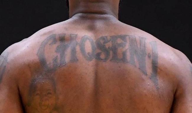 詹姆斯身上有一个著名的纹身“chosen1”,据说高中时期詹姆斯就有了这个纹身,这也是詹姆斯身上最著名的纹身,虽然詹姆斯从来没有公开的解释过这个纹身的含义,但我们从字面上也可以解读出来,chosen意为精选、选择,在宗教文化里有上帝挑选的意思,官方更是直接给出“天选之子”的解释,十分霸气但是确实符合詹姆斯伟大的篮球生涯。