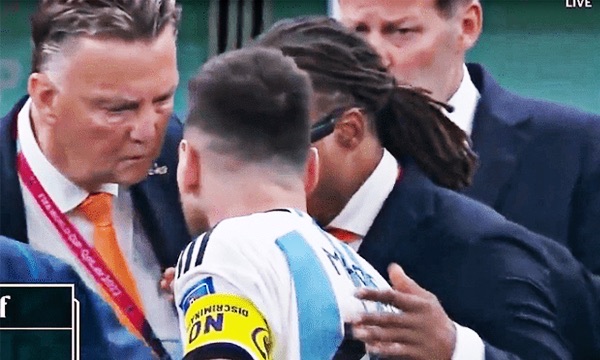 在比赛结束后梅西走到了荷兰队的教练席这边,和范加尔展开了理论,而戴维斯也过来说着什么。看得出来双方火药味很大,但毕竟比赛已经结束了,双方也仅仅是停留在口头争执上。
