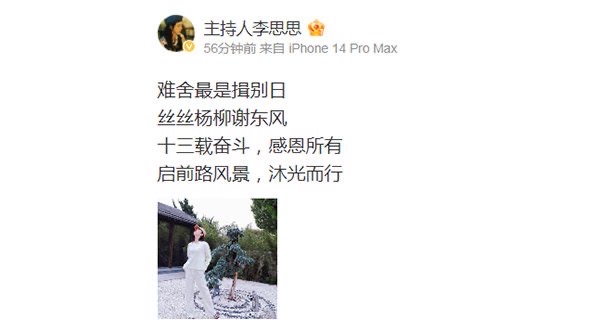 10月初,一则微博消息让李思思被大家猜测“离开央视”。