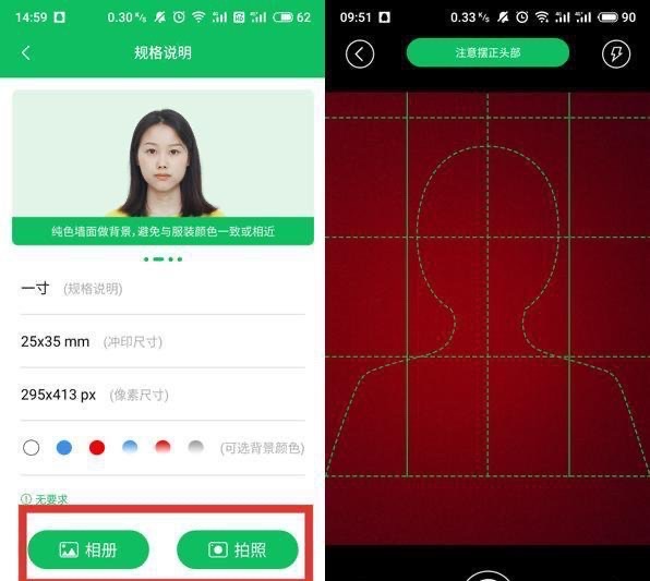 2、选择需要的证件照尺寸之后,我们可以从本地上传提前准备好的照片,或者直接选择在线拍摄。