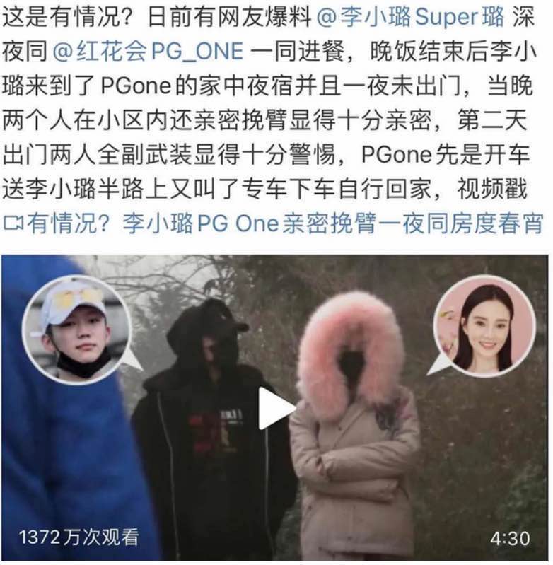 本以为三人的这段故事会在2017年画上一个句号,没想到在2109年迎来了第一个小高潮。李小璐和PGOne合拍的抖音视频被曝光在网络上,两人身着情侣衣默契合拍,暂且不说视频是如何泄漏的,只单纯的讨论两人关系。
