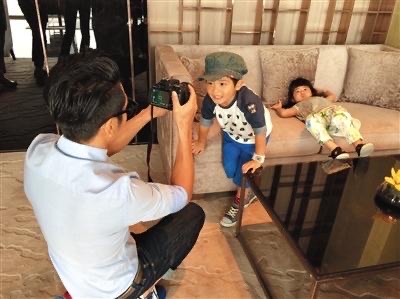 曹格喜欢为儿子和女儿拍照。