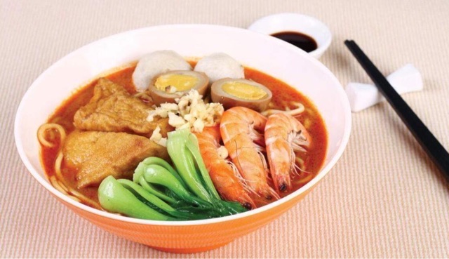 将猪肉、虾米、花生等材料炒制成沙茶酱,再加入各种配料,味道香辣鲜美