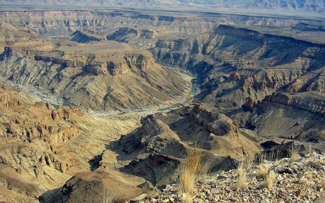 鱼河大峡谷是非洲第一大峡谷,长约 160 公里,宽27米,深550多米。它是位于纳米比亚南部的主要旅游景点,许多游客选择徒步探险鱼河大峡谷,当然只适合冬季前往。背包客们可以沿河道行走,道路两边被悬崖包围,整条路线从鱼河大峡谷的最北点一直通到艾艾斯温泉,需要靠着坚强的意志力完成。