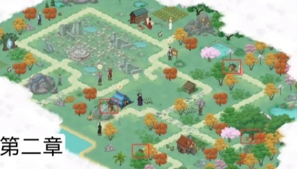 3、地图左侧的红色树林里有一个,地图右侧的棕色房子附近有一个。【周边网】