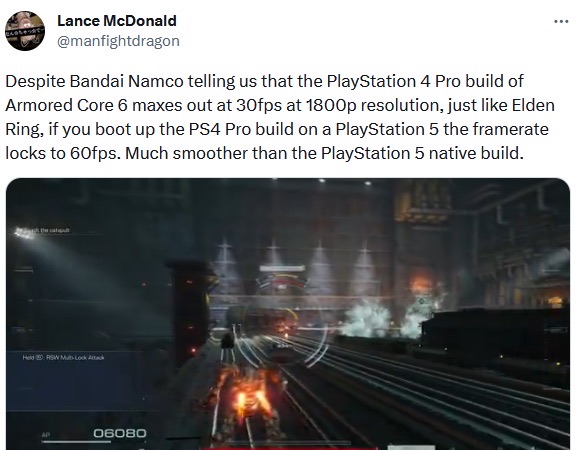 通过向后兼容,PS5版本的游戏几乎比PS4版本的游戏运行得更好。然而,FromSoftware的最新游戏却并非如此,因为《装甲核心6》PS4移植版本在PS5上运行得似乎比原生PS5版本更稳定。