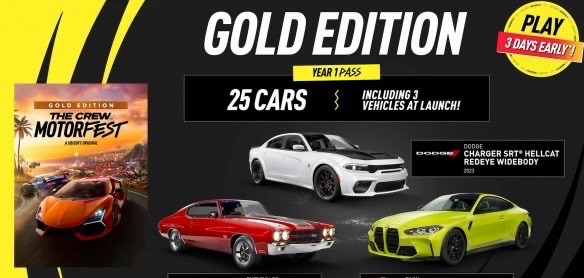 如果你购买了第一年通行证,你可以在9月11日至14日抢先体验举行的“美国肌肉活动”,通行证用户还会得到25辆额外的汽车。【周边网】游戏发售后第一个月中,玩家将会先得到3辆新车,它们分别是:The Dodge Charger SRT Hellcat Redeye Widebody 2023、Chevrolet Chevelle SS 1970和BMW M4 Competition Coupe 2021。