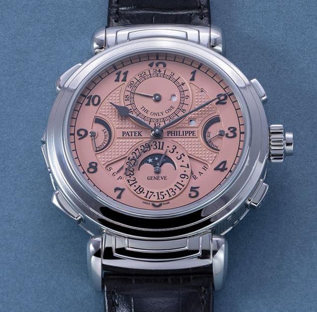百达翡丽2019年为only watch制作,仅此一只。6300大师弦音超级复杂表,本身已经是百达翡丽目前为止,在售款中,最复杂的手表。是表王中的表王。在售的白金壳6300G,公价是220万美元,就已经是将近1500万人民币的价格了。现在only watc慈善拍卖,独一无二的钢壳版本,加上慈善性质,让6300A成为了这个星球上,最贵的手表。
