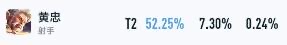 即使是在巅峰赛1350+,黄忠也有着52.23%的胜率。这证明了黄忠的强度依旧非常高。