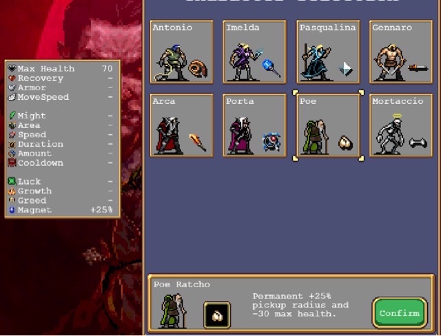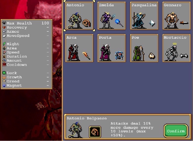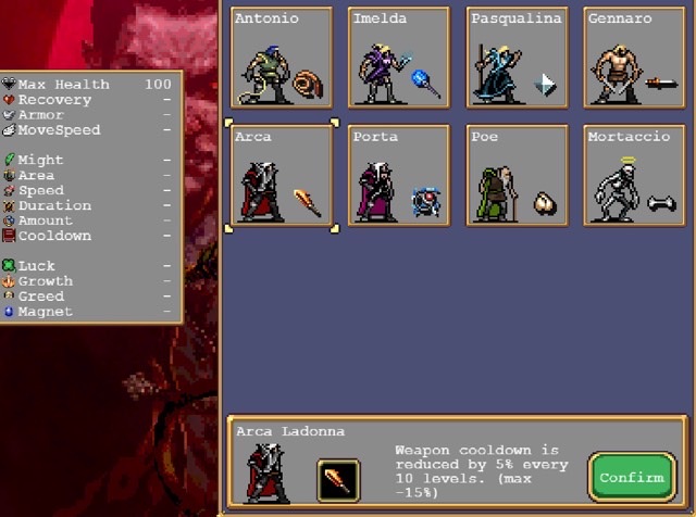 1.初始技能:鞭子、法杖、激光、小刀、火刀、雷法、大蒜、骨头,分别对应目前的八个角色,也可通过升级获取。