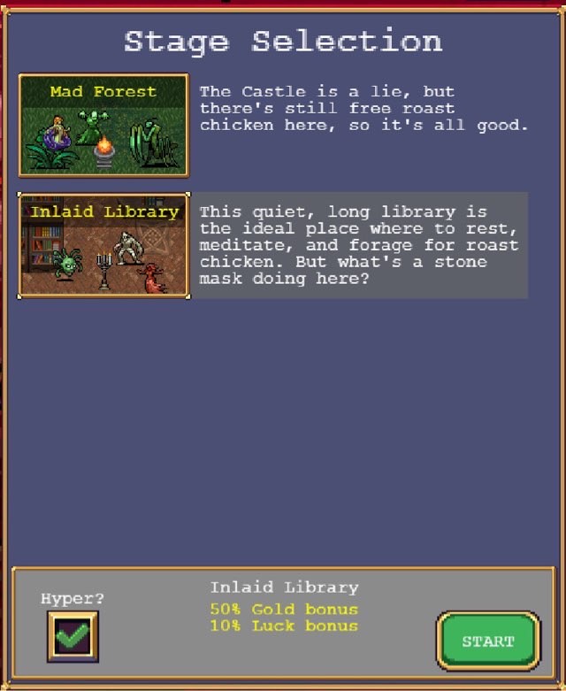 图书馆只能左右移动,随机刷新的烛台可以击毁,有几率获得各种道具和金币。