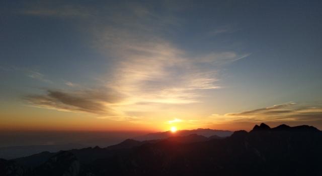 我第四次去的时候,选择的是夜爬,夜爬就是在晚上天黑之后开始上山,山上会有照明设备,所以不用担心会有危险,而选择夜爬的游客,其实只有一个目的,那就是日出。因为在晚上爬山,真的是很枯燥无味,除了身边照明的地方之外,远处都是黑漆漆的一片,也看不到路两旁的风景,身边的人都是一个劲的闷头往上爬,就连拍个照都有点费劲。而且夜爬有点难受的地方就在于,爬着爬着就热了,但到了山顶却又变冷了,这样一热一冷,很容易让体质差的人感冒。不过夜爬的最大好处,就是能看到华山的日出,真的是非常壮观,当看到一缕红日慢慢从远处浮现的时候,整个天际都被染红,瞬间感觉整个晚上的付出都是值得的。