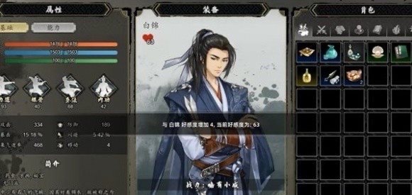 6、打完那几个卡拉米之后,对话白锦就能招募了,刷两三个礼物就成,60好感就能进队。