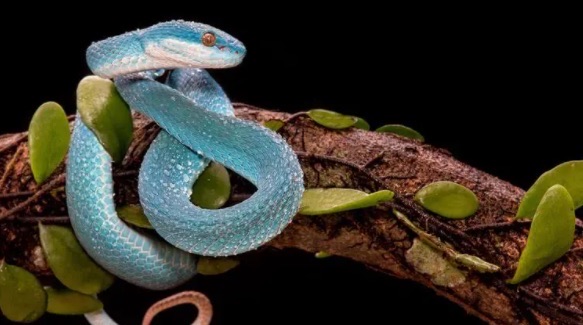 蓝蛇属于绿树蟒的变异···十分珍贵,售价能达到数十万美元,跟一辆兰博基尼的价格差不多。而且有钱你不一定能买得到。【周边网】