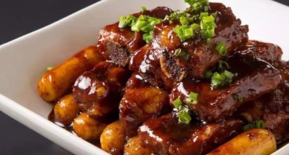 排骨年糕这个以大排和小而薄的年糕为主要原材料制成的独具风味的传统小吃,经过油氽烧煮制成的小吃集排骨的浓香、软糯可口且酥脆的年糕于一体,尤其是年糕入口糯中发香,配上酱汁则略带甜辣味。