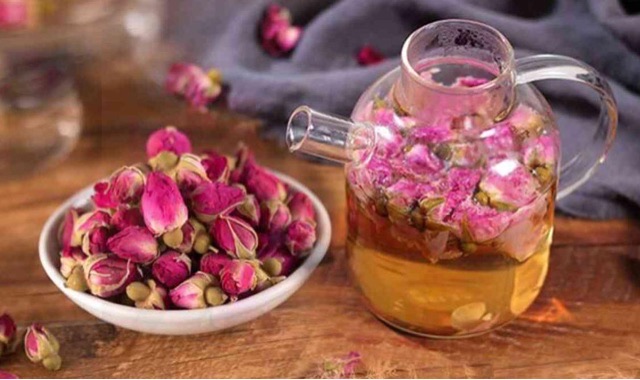 玫瑰花茶为最好的馥郁型花茶,其茶性温和柔润,定期品饮不仅美容养颜、生津止渴、调经解乏,还具有抗抑郁、驱寒暖胃等效果,另外玫瑰花茶的干花茶除了用干花焖泡后,还可以与普洱茶一起制成玫瑰普洱茶,此时将玫瑰花与普洱茶按照5:1的比例焖泡,且先放入普洱茶,用热水洗茶后,再放入玫瑰花茶以及蜂蜜用温水泡开。