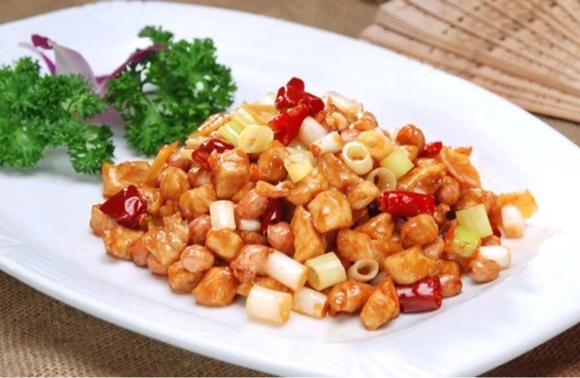 宫保鸡丁选用鸡肉为主料,佐以花生米、辣椒等辅料烹制而成。红而不辣、辣而不猛、香辣味浓、肉质滑脆。【周边网】由于其入口鲜辣,鸡肉的鲜嫩配合花生的香脆,广受大众欢迎。