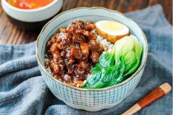 与名声在外的台湾卤肉饭相比,台湾本地人更喜欢焢肉饭。焢肉饭所使用的焢肉一般选用肉质软嫩、胶质丰富的猪后腿肉。台湾人会用特殊的串接技法,使用两个竹签,运用猪皮本身的韧性,延展包覆着整块焢肉,以保证焢肉经历漫长的烧卤依然保存完整的外观。