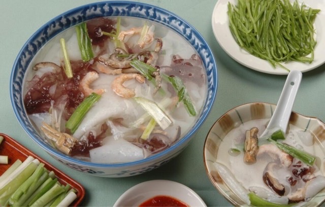 鼎边糊是福州早餐系列的另一项地标性小吃。它食材丰富多样,搭配融合了虾米、香菇、蛤蜊、黄花菜等8样食材,加上烘干的浓米浆和清汤配煮,风味十足,让人越吃越上口。福州人在品尝鼎边糊的时候一般喜欢搭配芋粿、虾酥、油条等特色小吃一同品尝,风味上已然更上一层楼。